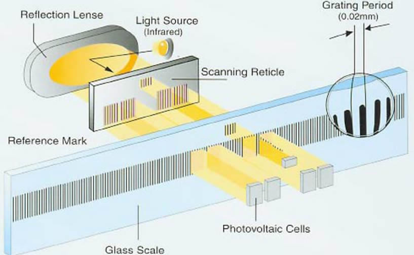 光柵尺工作原理圖 Working principle diagram of grating ruler